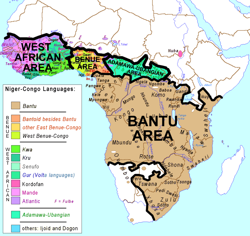 Il y a un peu plus de 5 000 ans, les Bantous ont migré partout sur le continent pour des raisons d’évolution climatique : des bords du Nil initialement, jusqu’aux actuel·les Cameroun à l’ouest, et Éthiopie et Afrique du Sud à l’est (p. 430) [2].
